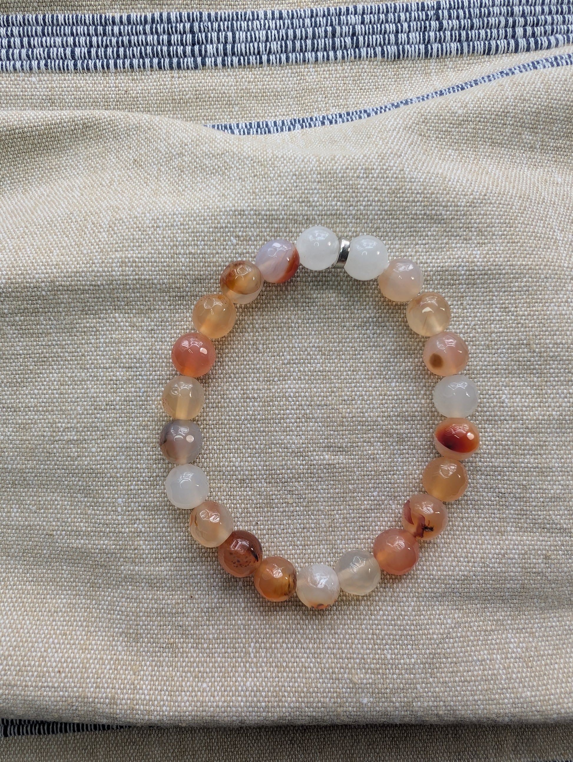 8mm beads. Stretch to fit size Small.